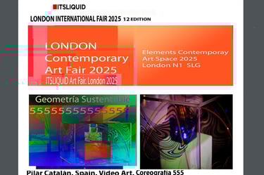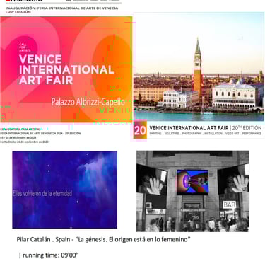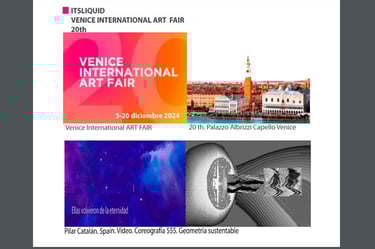 En este último ámbito artístico visual, el del videoarte, y en particular en su apartado de videocreación, Pilar Catalán ha venido desarrollando unos importantes, originales y sui generis trabajos, como los tres últimos en los cuales ahora nos centramos: El primero, El origen está en lo femenino, que fue seleccionado en la 20 edición de la Feria de Arte Internacional de Venecia, (2024), y que está en relación con el poemario de la artista, La Génesis. El origen está en lo femenino, habiendo, incluso, formado parte ambos de la performance Mixtura, que se incluyeron en una mesa de presentación y lecturas de poemas de Pilar Catalán, en el IAACC, Museo Pablo Serrano, en el pasado año 2024. El segundo, Gramatología en un espejo, seleccionado, en este caso, para la undécima edición de la Feria de Arte Internacional de Roma, de 2024, otorgando protagonismo a la escritura que se fusiona con las imágenes, desde ópticas deconstructivas del logofalocentrismo. Y el tercero, Coreografía 555. Geometría sustentable, video seleccionado en Itsliquid International Art Fair de Londres (2024), en el cual toma al cubo como geometría central de la pieza, dotándolo de movimiento, desestimando su estabilidad, cuestionándola, como ocurre en la vida, a la vez que se refiere a la numerología y sus significados simbólicos.