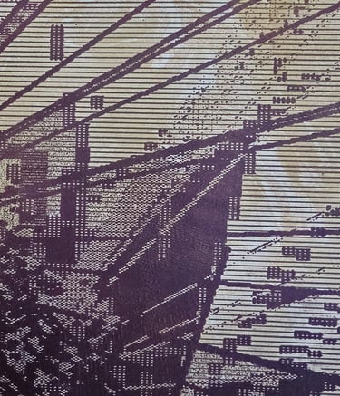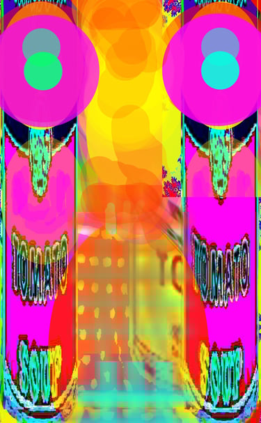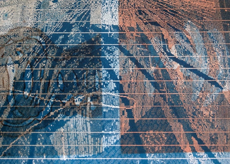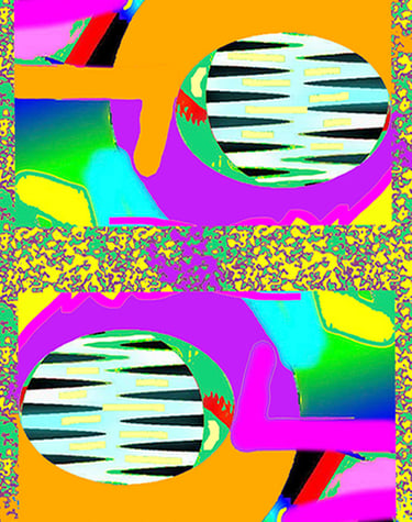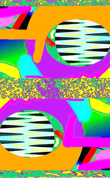 Añade, a su vez, perspectivas constructivas de narrativas feministas, sobre todo ecofeministas, mientras emergen nuevas formas en una visualidad en la que se combinan los trazos y líneas, de colores planos, que se multiplican y reiteran, añadiendo estructuras, a modo de celdillas o placas de circuitos electrónicos, que nos recuerdan tanto a como hacen las células al crecer, multiplicándose, reproduciéndose, a la vez que a la construcción artificial, en tanto que maquinal como cultural, tanto del lenguaje, como de nosotrxs mismxs, y a la fusión entre naturaleza y cultura, entre humanx y máquina.